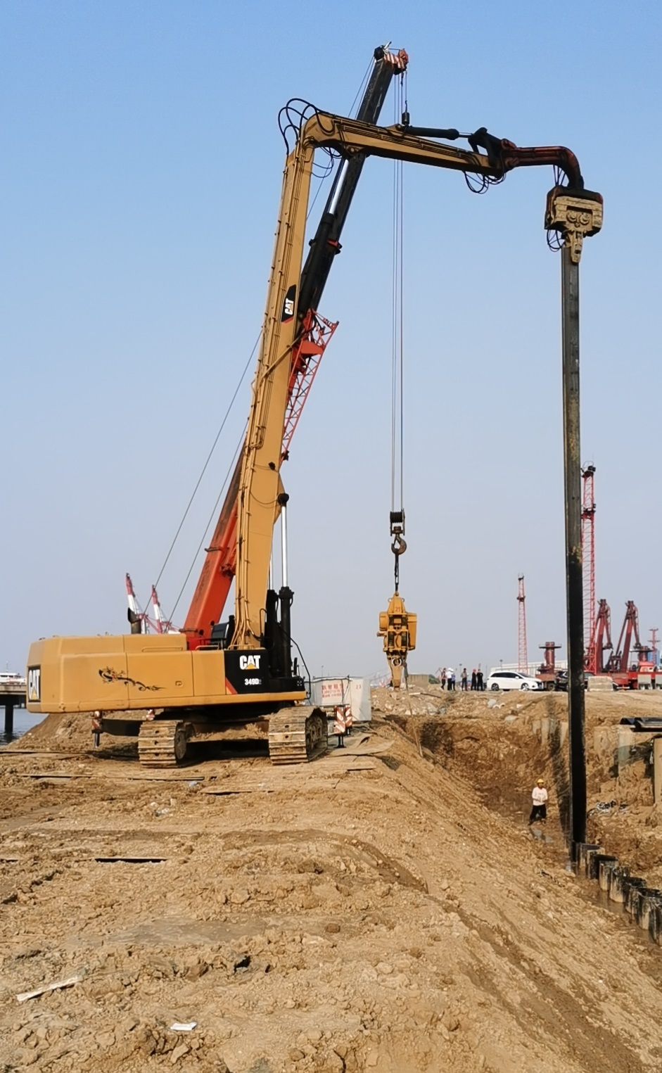無錫(江陰)港申夏港區(qū)4號(hào)碼頭為長(zhǎng)江深水碼頭,本次碼頭護(hù)岸工程全長(zhǎng)約300米,由南京瑞迪建設(shè)科技有限公司設(shè)計(jì),無錫市航道工程有限公司總承包,我公司承擔(dān)地基加固與護(hù)岸施工,包括水泥攪拌樁、預(yù)應(yīng)力管樁、OZ鋼板樁。 (發(fā)展事業(yè)部)